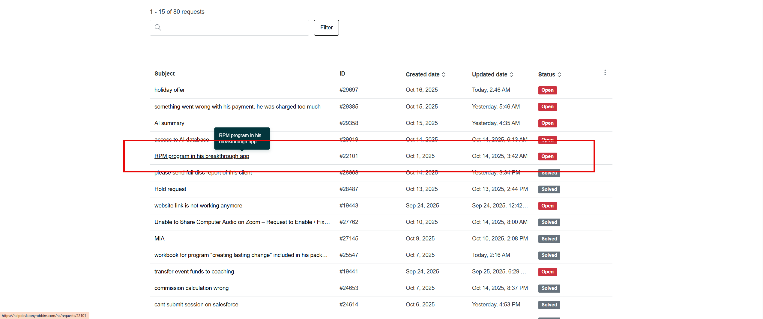 You’ll see a list of all the requests you’ve submitted, including:
